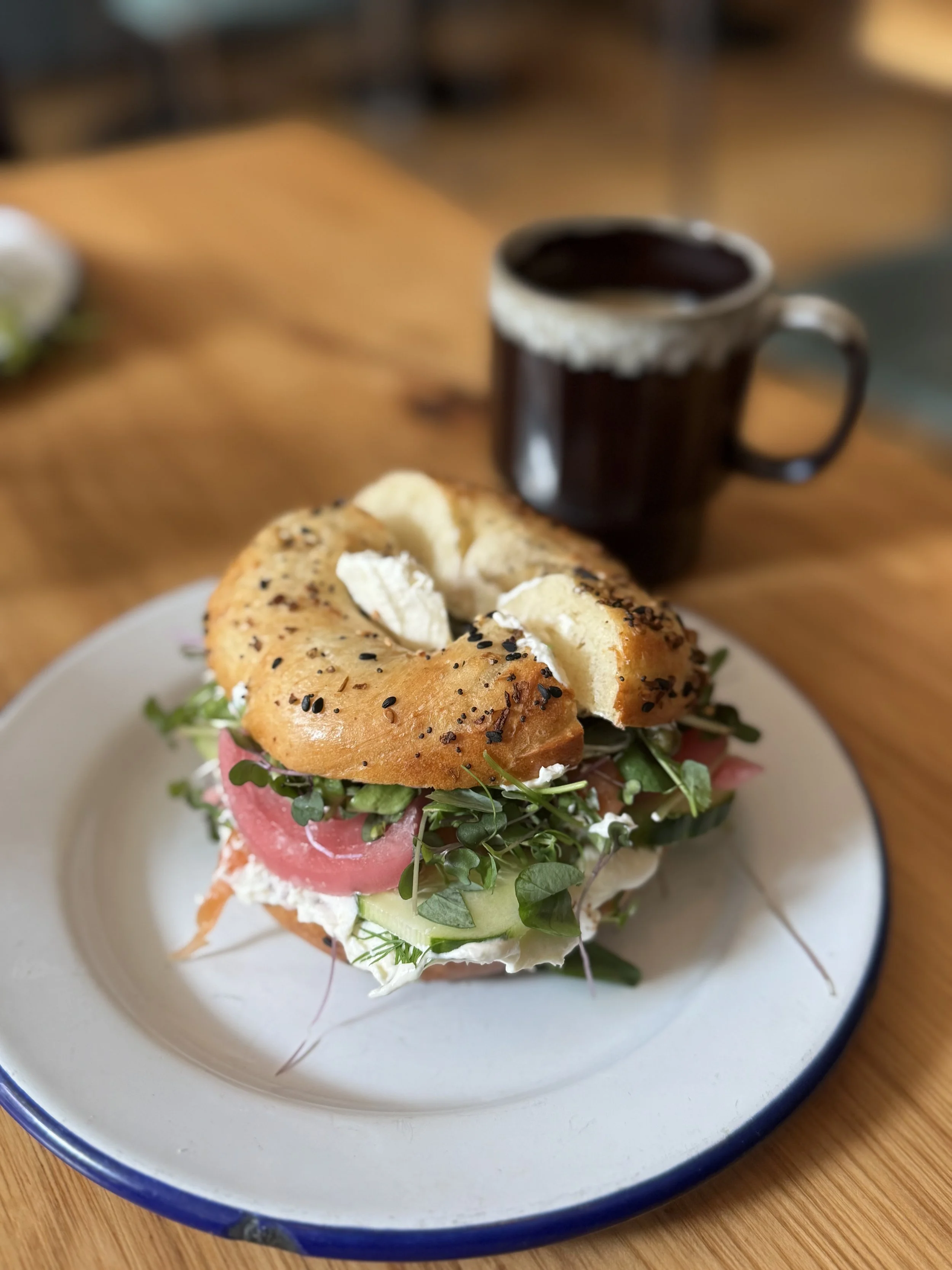 What to Order: Sesame Bagel with Pickled Pepper Cream Cheese.